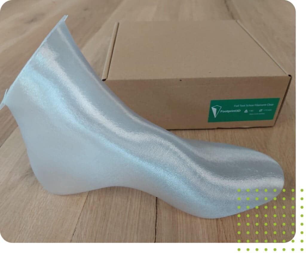 Dit filament is ideaal voor het printen van pasfolies. Het biedt uitstekende transparantie en precisie. Beschikbaar in spoelen van 250 gram of 1 kilogram, afgestemd op jouw printer en productievolume. Een 1 kg spoel kost €45,- excl. BTW. Gemiddeld haal je meer dan 7 paar pasfolies uit 1 kilo filament, wat neerkomt op slechts €6,42 per paar!
